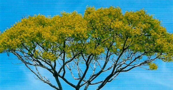 The Brazilian Fern Tree is one of the fastest-growing trees in the world, renowned for its slender, smooth trunk and a striking crown of feathery, fern-like leaves. During its flowering season, the tree is covered in a spectacular display of bright yellow blossoms, highly attractive to bees and other pollinators. This species is an excellent choice for creating a fast canopy or a tropical statement piece in larger landscapes.